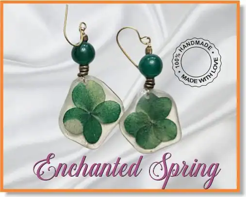 Los delicados pétalos verdes, preservados en su esplendor natural, son hábilmente encapsulados en un cristalino acrílico transparente, que los protege y realza su belleza intrínseca. Cada par de aretes es único, ya que reflejan la diversidad y la exuberancia de la flora primaveral.