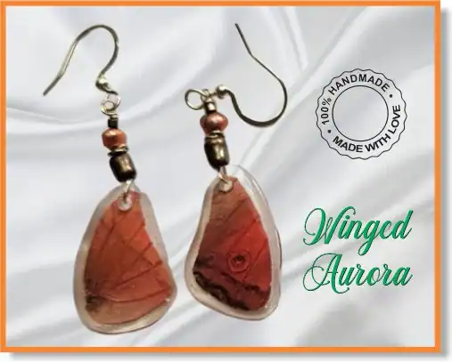 Conjunto de joyas que despierta pasiones y enciende la imaginación. El marrón intenso de las alas de mariposa captura la mirada y el corazón, como si estuvieran impregnadas de fuego y pasión. Estas alas, tan delicadas como hermosas, están cuidadosamente encapsuladas en cristal de acrílico transparente, que las protege sin ocultar su esplendor.